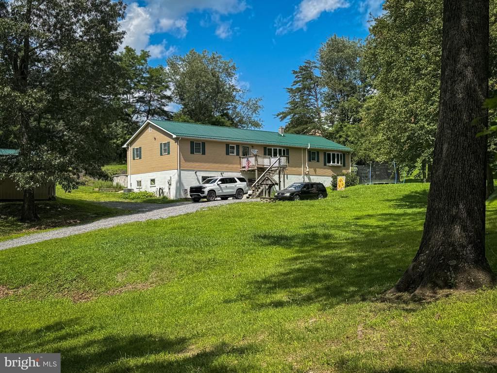 Country roads take me home. Experience country living at its finest in this spacious 5-bedroom, 3-bath home set on 1.68 private acres. This raised ranch offers an open-concept layout, featuring an updated kitchen, a dining area with direct access to the deck and pool, and a cozy living area with a propane stone fireplace—perfect for relaxing or entertaining. The large primary suite includes a sitting area, ensuite bath, and private access to the backyard. Three additional bedrooms with generous closet space and a full bath complete the main level. Downstairs, enjoy the convenience of a finished basement with a spacious bedroom, a versatile den (which could serve as a sixth bedroom), and plenty of storage. Step outside to a fantastic entertaining space, including an above-ground pool, a deck, and a sprawling yard ideal for outdoor activities. Additional features include outdoor storage sheds and ample parking, making this property a true country paradise.