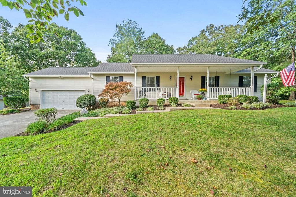 COMING SOON!! Professional photos to follow - Welcome Home! This charming brick-front/vinyl siding Rambler is nestled in one of the area’s most sought-after neighborhoods. Situated on a private 3.28-acre end lot, the property offers a spacious front porch to enjoy your surroundings and a serene wooded backdrop that provides the privacy and nature you’ll fall in love with. Lovingly maintained by the original owners since 1997, pride of ownership truly shines. Major updates include: crawlspace encapsulation (2015), new well pressure tank (2018), gutters with leaf guards & Pella back slider (2018), updated primary bath (2020), full roof and HVAC system replacement (2020), new blinds (2022), new carpet (2024), and updated smoke detectors (2025). The beautifully manicured lawn is supported by a built-in irrigation system, making it easy to maintain. Inside, you’ll find spacious bedrooms and a comfortable primary suite with its own updated en suite bath. This home blends peace, privacy, and convenience—don’t miss your chance to make it yours!